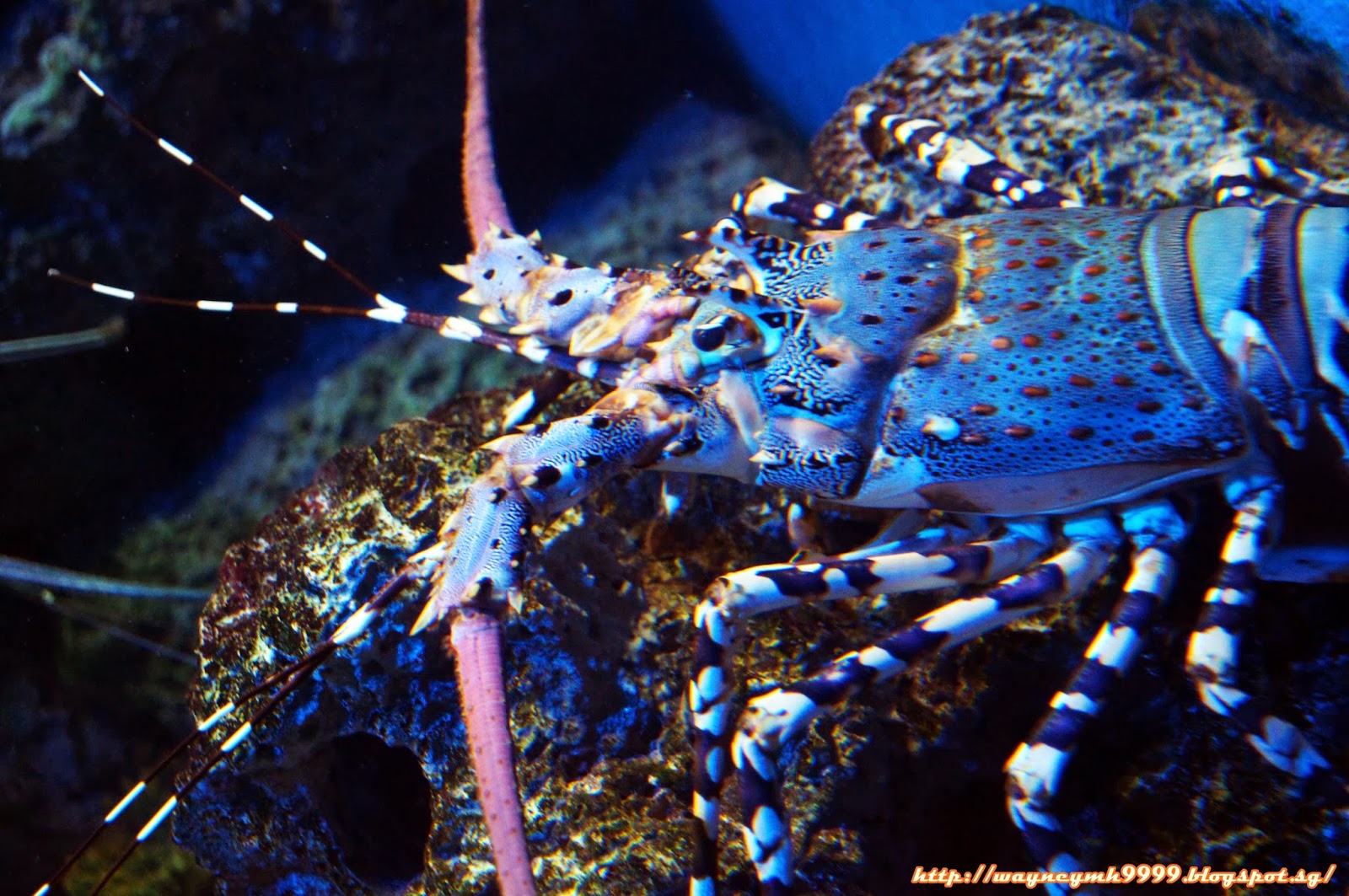 这可是我第一次看到好珍贵的“蓝夫人”-锦绣龙虾,实在是太美了。那里的介绍写着:栖息于水深达八米的浑浊沿海水域,泥沙基板,岩石和珊瑚礁。它以`双壳类,多毛虫,腹足类和甲壳类动物为食。在这沉船生态区里除了可以看见龙虾外,还有其他很多宝贵的海洋生物。