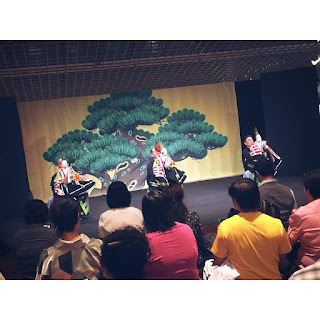 佩服表演者单独超控木偶,表演者向观众们分享了如何超控木偶细节的经验,原来隐藏在木偶戏服下是挺考功夫与技巧,表演者的双手要同时超控不仅是木偶的左右手,而且还有木偶的手指动作,加上木偶的头部关节和脸部表情,所以舞动木偶起来要灵活之外,更要拿捏木偶的姿势,甚至有些设计复杂的木偶需要一个人以上来进行操控。再说木偶的身高到普通人的腰部,因此,表演者们需要依靠特制的一座设有轮子的椅子,方便表演者以坐着的姿势移动来操控木偶以完成整场表演。除了富有娱乐之外,也通过木偶戏知道日本的神话故事,观众们还可以欣赏木偶的角色和服装设计。那栩栩如生的模样加上惟妙惟肖动作与姿态还真叫人觉得诡异,不说还不知道台上所呈现的木偶已经有一百五十年以上,可说是木偶收藏家们的悉心照顾得以保存到那么完美无缺。长达百岁的精致木偶叫人联想到是不是已经有它们的灵性呢?